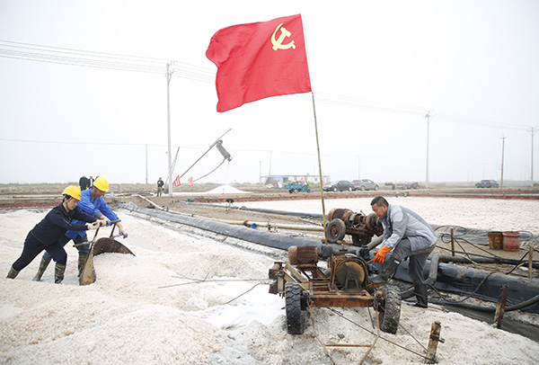 黨旗引領 新灘鹽場春季扒鹽工作在行動