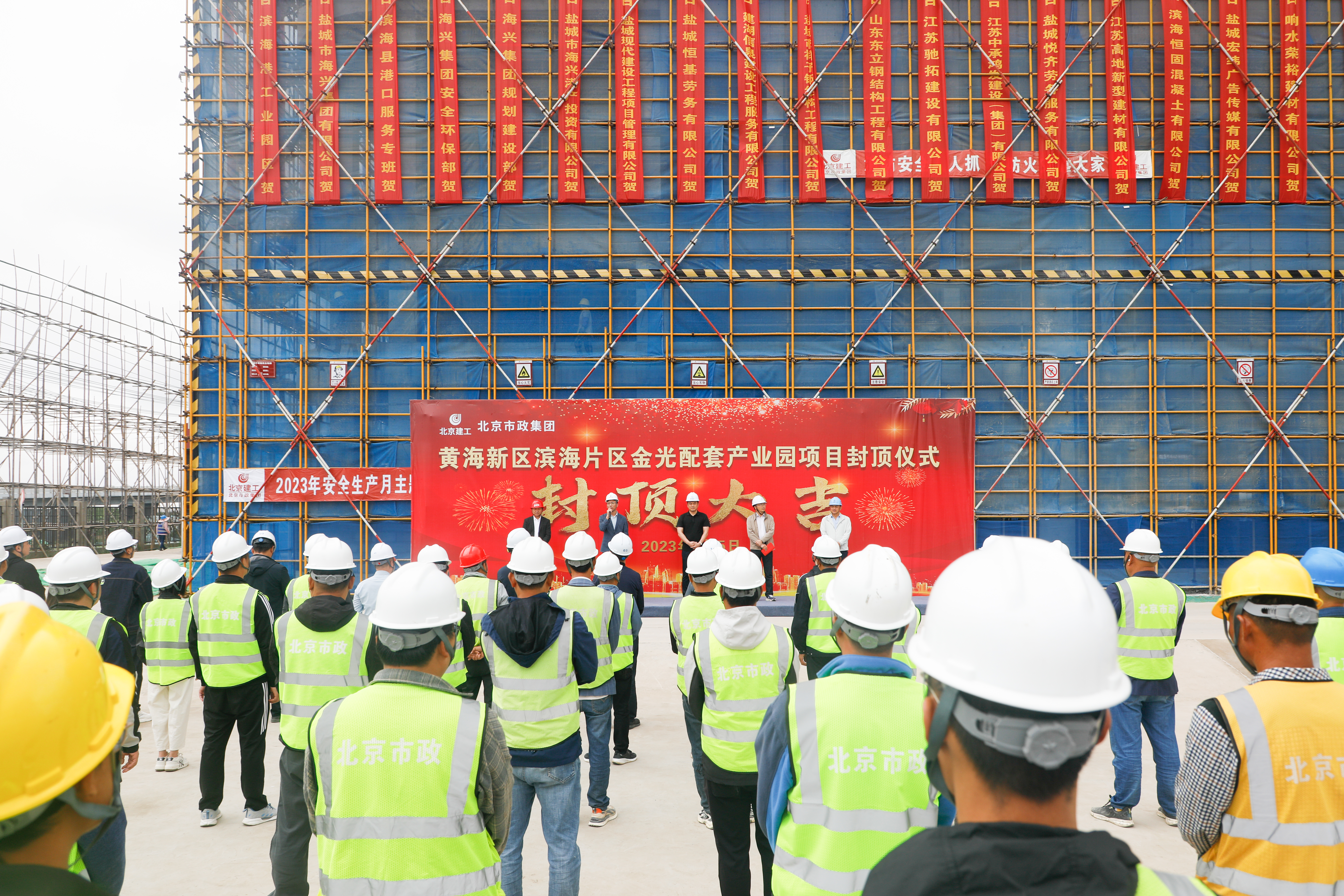 一線傳真 | 黃海新區濱海片區金光配套產業園項目首棟廠房順利封頂