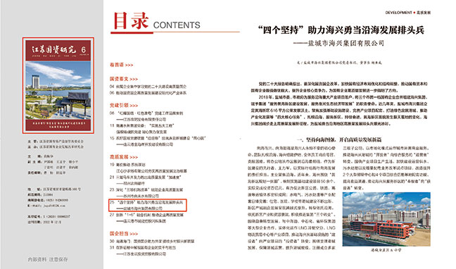 近日,海興集團黨委書記、董事長楊亞成署名文章《“四個堅持”助力海興勇當沿海發展排頭兵》在《江蘇國資研究》2022年第六期“高質發展”版塊刊發。《江2022-12-30 -